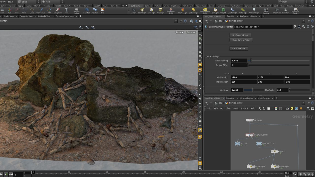 - หากใครใช้ Houdini อยู่ ถือเป็นโชคดีของพวกคุณแล้ว เพราะทาง SideFX ได้ทำการประกาศปล่อย Physics Painter tool ซึ่งที่จะช่วยให้เราได้ Paint พวก Physics Objects บน Scene ได้ฟรี โดยมันเป็นเครื่องมือที่ยอดเยี่ยมและใช้งานได้ง่ายสำหรับ Paint พวกก้อนหินในเกม หรือโปรเจค VFX ต่างๆ