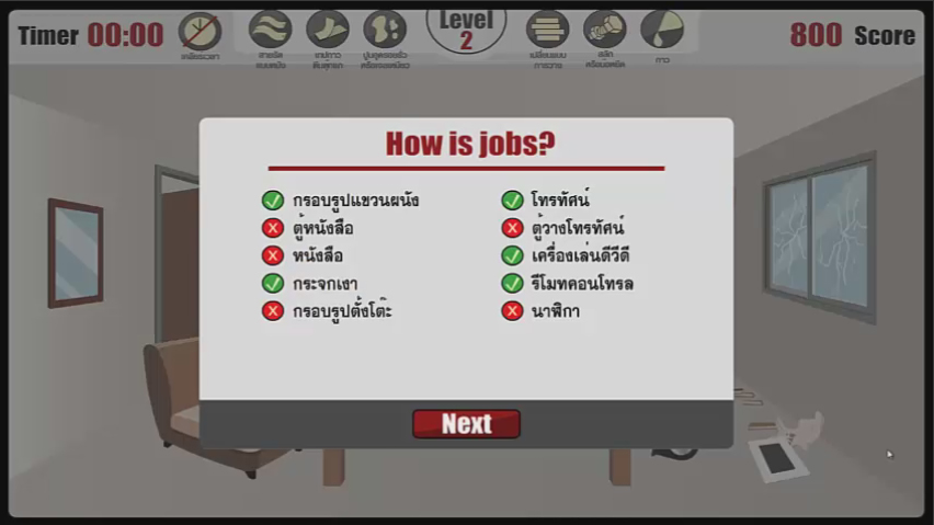 งาน2D เกมส์ Earth Quake รับมือแผ่นดินไหว วิธีการเล่น “ให้ผู้เล่นเลือกสิ่งของ ช่วยเหลือยึดสิ่งของที่กำหนดให้ ในขณะที่แผ่นดินไหว”