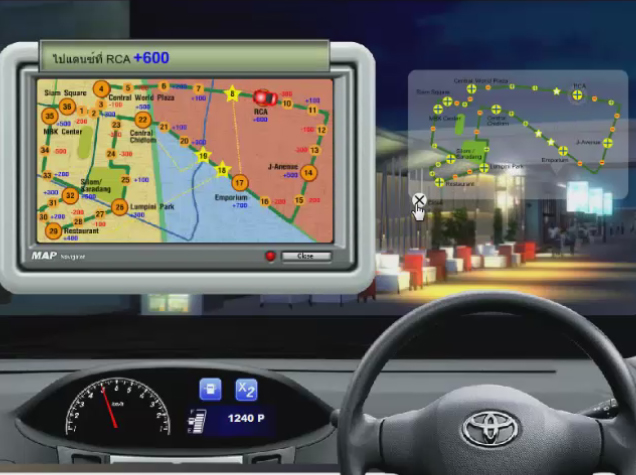 2D game Yaris1 เกมขับรถ Yaris วิ่งรอบกรุงเทพมหานคร โดยการขับรถไปตามสถานที่ต่างๆ ในกรุงเทพฯ โดยระวังไม่ให้น้ำมันหมด และเจอกับสถานการณ์ต่างๆ ที่เกิดขึ้น