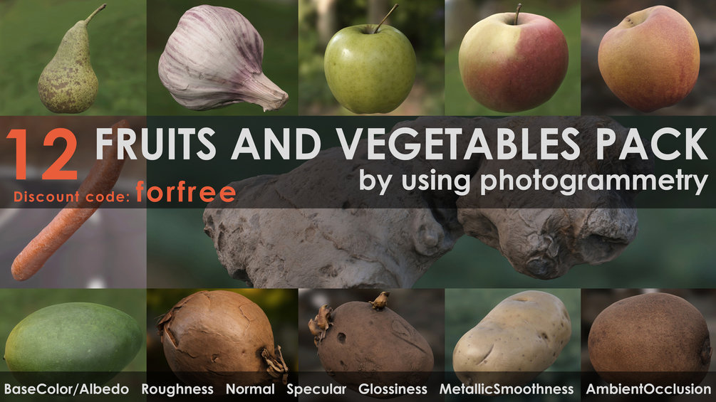 Tomáš Búran ผู้เป็น 3D Artist ได้ทำการปล่อยโมเดล 3D scans ของผลไม้ฟรี 22 แบบ โดยแต่ละแบบมี LODs ทั้งหมด 5 ระดับ และมี 4K PBR textures ติดมาด้วย โดยไฟล์ทั้งหมดได้รับอนุญาตให้ใช้ได้ในเชิงพาณิชย์ ทั้งนี้ตัวไฟล์จะประกอบไปด้วย 2 ชุด คือผลไม้ และผัก 12 แบบ และผลิตภัณฑ์เบเกอรี่อีก 10 แบบ