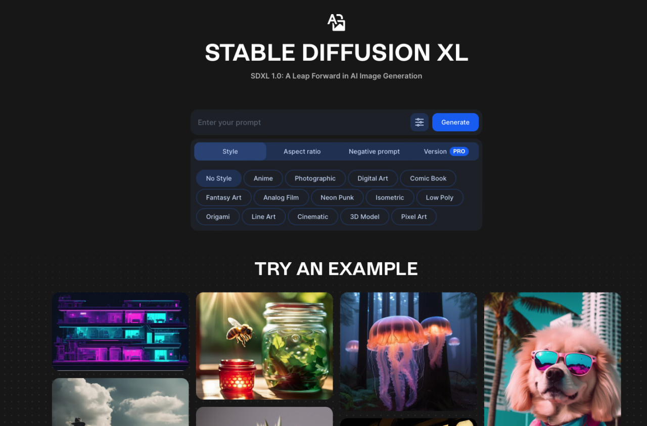 Stable Diffusion XL เป็นฟีเจอร์สร้างภาพจากข้อความ (prompt) โดยให้ AI เจ็นภาพออกมาให้ จุดเด่นของมันอยู่ที่เราสามารถเลือกสไตล์ของภาพได้เลย เช่น อยากให้ภาพออกมาในแนวอนิเมะ หรือออกมาในแนวโมเดล 3D ก็ได้ โดยมีให้เลือกกว่า 15 สไตล์ด้วยกัน ซึ่งหลังจากได้ภาพออกมาแล้ว เราสามารถนำมันไปปรับแต่งด้วยเครื่องมืออื่น ๆ ของ Clipdrop ต่อได้เลยทันที