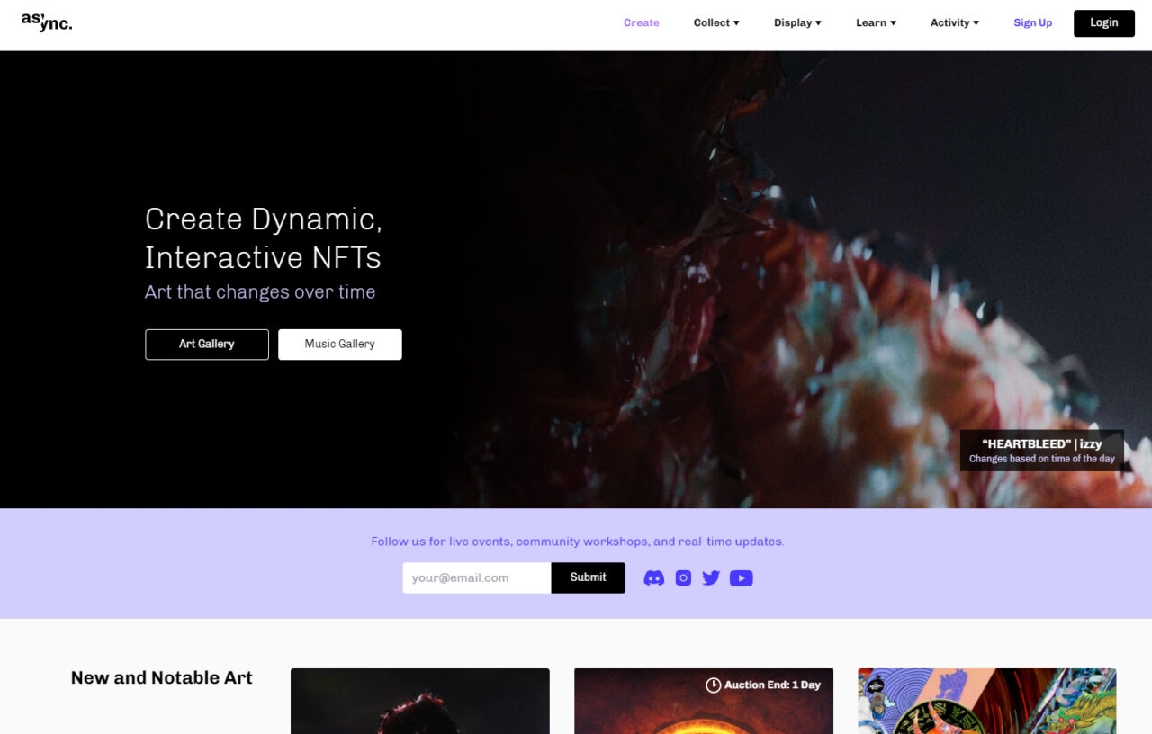 Async Art เป็นตลาดที่ช่วยให้เราสามารถสร้าง รวบรวม และแลกเปลี่ยนผลงานศิลปะต่าง ๆ ได้ ที่นี่ผลงานต่าง ๆ ที่จำหน่าย ตัวเราสามารถให้สิทธิ์คนที่ซื้อปรับเปลี่ยนตัวผลงานได้ โดยจะแยกเป็น “Masters” กับ “Layers” ตัวผลงาน Masters จะเป็นผลงานที่สร้างออกมาเป็นแบบ 1 : 1 เราสามารถแก้ไขตัวศิลปะของเราได้โดยตรง ด้วย Layers ที่จัดจำหน่าย