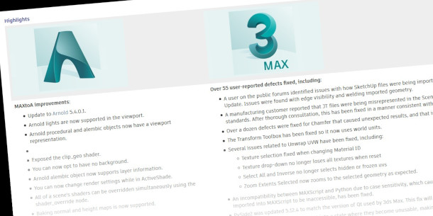 Autodesk ทำการปล่อยเอกสารออนไลน์เกี่ยวกับ 3ds Max 2020.3 อัปเดตล่าสุดของซอฟต์แวร์ 3D modelling และ Animation ซึ่งในเวอร์ชั่นนี้ จะทำการแก้ไขปัญหากว่า 55 อย่างด้วยกัน พร้อมอัปเดตชุดปลั๊กอิน MAXtoA rendering เพื่อให้ซัพพอร์ต Arnold 5.4 ทำให้สามารถใช้ Arnold lights และ procedurals ใน 3ds Max viewport ได้ อ่านเพิ่มเติม [คลิก]