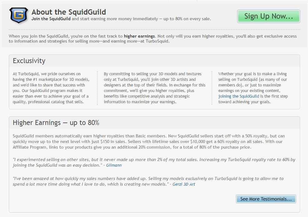 “ทั้งนี้หากเป็นการเริ่มต้นใหม่ การขายแบบไม่ผูกขาดถือว่าเหมาะสมเป็นอย่างยิ่ง” เพราะแม้ว่าค่าลิขสิทธ์จากการขายผูกขาดจะดีอย่างไรแต่มันก็จำกัดลูกค้าที่จะเข้ามาเห็นผลงานของเราผ่านบนเว็บไซต์ตลาดนั้นๆ ได้ในจำนวนหนึ่ง ซึ่งเมือคิดกลับกันหากเรานำผลงานไปขายในหลายๆ เว็บ โอกาสที่ลูกค้าจะสนใจหรือซื้อผลงานของเราก็จะมีมากขึ้น และเหตุผลข้อสองที่ไม่ควรขายผลงานแบบผูกขาดในขณะที่เพิ่งเริ่มต้น ก็เพราะว่าแม้การขายแบบผูกขาดจะให้ค่าลิขสิทธิ์ที่สูง แต่เราจะได้รับเงินส่วนนั่นก็ต่อเมื่อเราสามารถทำรายได้ถึง 10,000 ดอลล่าร์เสียก่อน ถึงอย่างไรก็ตามเมื่อเราทำการขายโมเดลมาแล้ว 3 เดือน และพบว่ารายได้ส่วนใหญ่ของเรามาจากเว็บไซต์ตลาดไหนเป็นหลัก ตอนนั้นเราค่อยคิดถึงการขายขาดก็ไม่สายเกินไปหรอก