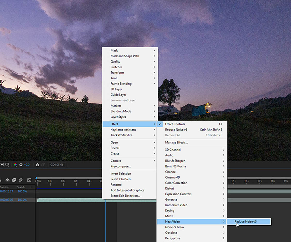 การใช้งาน Reduce Noise v5 ของ Neat Video ใน After Effects