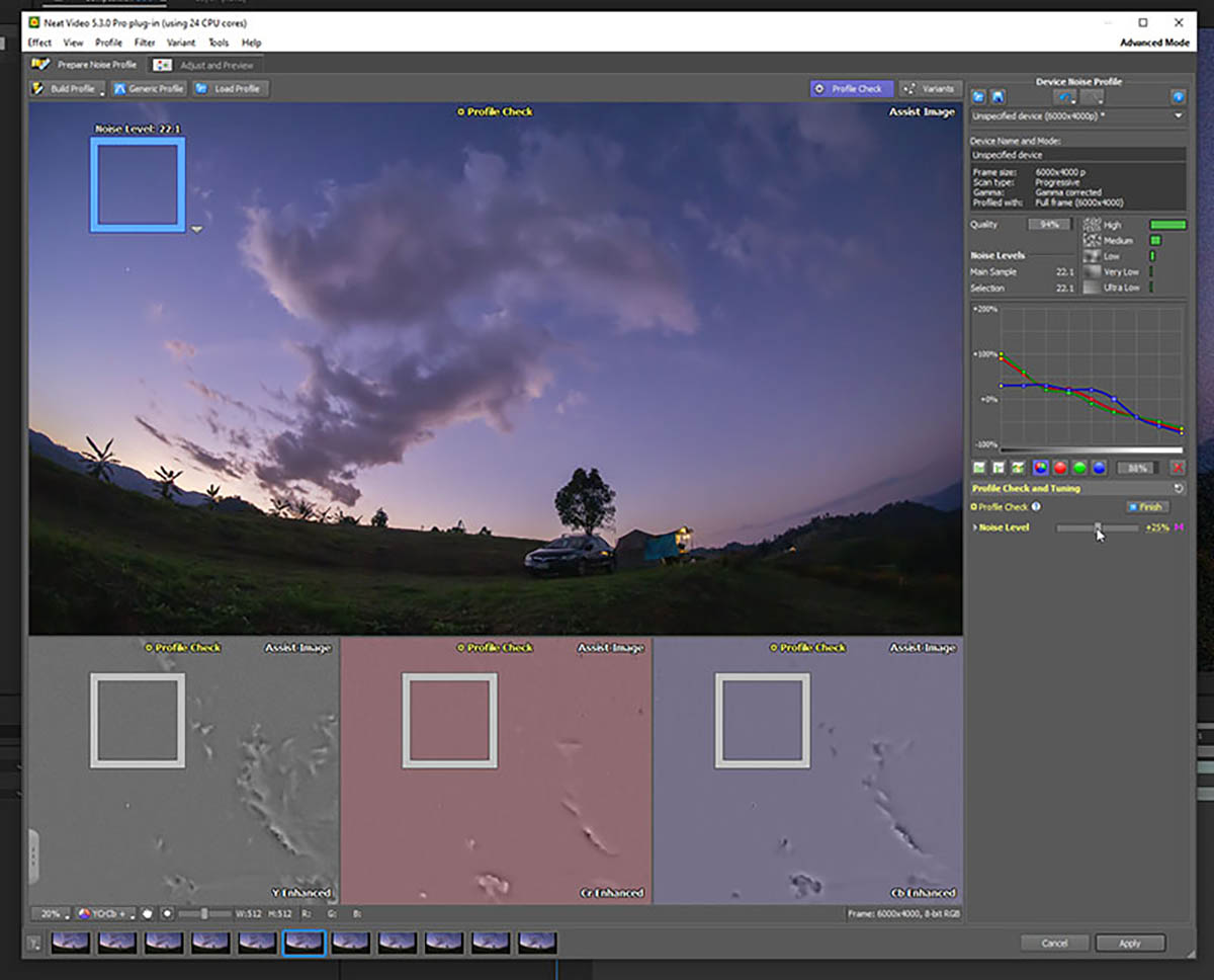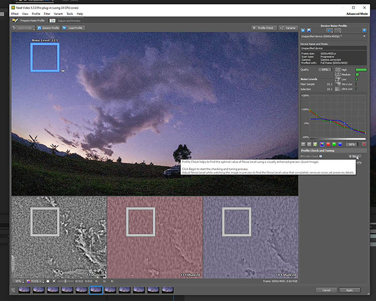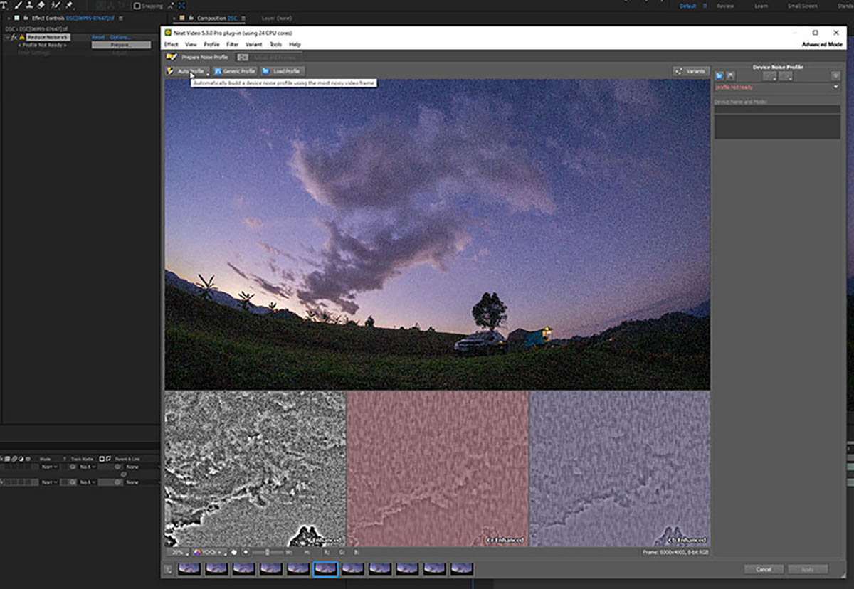 - ถ้าเป็น timelapse ให้เลือกเฟรมที่มี noise สูงสุดเพื่อทำ Auto Profile จะช่วยให้ได้ผลลัพธ์แม่นยำ