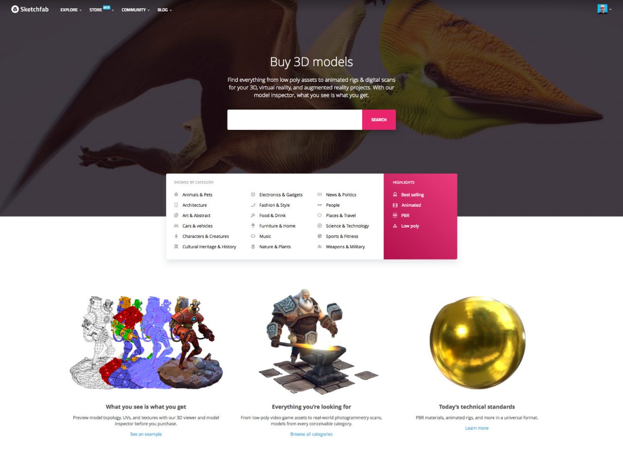 Sketchfab เปิดตัว 3D model Store ผ่านเว็บไซต์แบบ Online !!