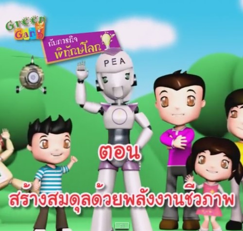 การ์ตูนอนิเมชั่นสื่อเรียนรู้ Greengang กับภารกิจพิทักษ์โลก ตอนที่ 2 เรื่อง ภารกิจรักษ์น้ำ เป็นงานของการไฟฟ้า เรื่องราวของ คนในยุคปัจจุบันครอบครัวหนึ่งที่ใช้พลังงานอย่างฟุ่มเฟือยจนทำให้ประตูมิติเกิดการ บิดเบี้ยว จนทำให้ประตูมิติเปิดขึ้น จนมีหุ่นยนต์จาก อนาคตหลุดเข้ามาในยุคปัจจุบัน เพื่อที่จะช่วยให้หุ่นยนต์กลับไปยังโลกอนาคต จิงเกิดภารกิจ ลดการใช้พลังงานระหว่าง มนุษย์และหุ่นยนต์ ในตอนนี้เรื่องราวทั้งหมดก็จะแนะนำเกี่ยวกับพลังงานทดแทน ลักษณะงานจะเป็นงาน 3d animation แนวสดใสเหมาะกับทุกเพศทุกวัย…