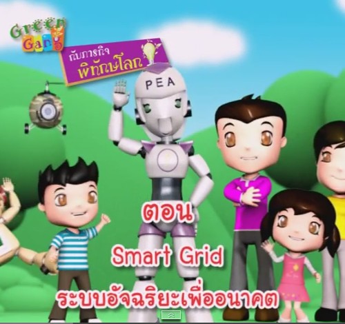 ผลงานการ์ตูนอนิเมชั่น รูปแบบ 3d animation เรื่อง greengang กับภารกิจพิทักษ์โลก ตอน มีอะไรซ่อนอยู่ในโรงไฟฟ้าพลังงานแสงอาทิตย์ อนิเมชั่นเรื่องนี้ เป็นงานของการไฟฟ้าส่วนภูมิภาค และบริษัทมาจอริตี้เป็นผู้จัดทำ โดยนำเสนอเรื่องราวของ คนในยุคปัจจุบันครอบครัวหนึ่งที่ใช้พลังงานอย่างฟุ่มเฟือยจนทำให้ประตูมิติเกิดการ บิดเบี้ยว จนทำให้ประตูมิติเปิดขึ้น จนมีหุ่นยนต์จาก อนาคตหลุดเข้ามาในยุคปัจจุบัน เพื่อที่จะช่วยให้หุ่นยนต์กลับไปยังโลกอนาคต จิงเกิดภารกิจ ลดการใช้พลังงานระหว่าง มนุษย์และหุ่นยนต์ เรื่องราวจะเป็นอย่างไรติดตามได้ที่ cartoon greengang กับภารกิจพิทักษ์โลก…