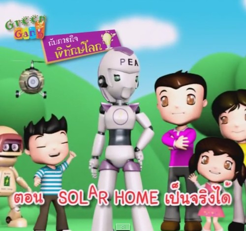 การ์ตูนอนิเมชั่นสื่อเรียนรู้ Greengang กับภารกิจพิทักษ์โลก ตอนที่ 2 เรื่อง ภารกิจรักษ์น้ำ เป็นงานของการไฟฟ้า เรื่องราวของ คนในยุคปัจจุบันครอบครัวหนึ่งที่ใช้พลังงานอย่างฟุ่มเฟือยจนทำให้ประตูมิติเกิดการ บิดเบี้ยว จนทำให้ประตูมิติเปิดขึ้น จนมีหุ่นยนต์จาก อนาคตหลุดเข้ามาในยุคปัจจุบัน เพื่อที่จะช่วยให้หุ่นยนต์กลับไปยังโลกอนาคต จิงเกิดภารกิจ ลดการใช้พลังงานระหว่าง มนุษย์และหุ่นยนต์ ในตอนนี้เรื่องราวทั้งหมดก็จะแนะนำเกี่ยวกับพลังงานทดแทน Solar Home ลักษณะงานจะเป็นงาน 3d animation…