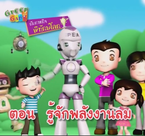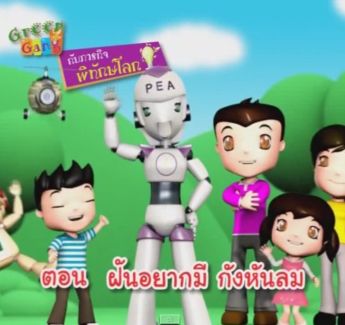 การ์ตูนอนิเมชั่นสื่อเรียนรู้ Greengang กับภารกิจพิทักษ์โลก ตอน ฝันอยากมี กังหันลม เป็นงานของการไฟฟ้า เรื่องราวของ คนในยุคปัจจุบันครอบครัวหนึ่งที่ใช้พลังงานอย่างฟุ่มเฟือยจนทำให้ประตูมิติเกิดการ บิดเบี้ยว จนทำให้ประตูมิติเปิดขึ้น จนมีหุ่นยนต์จาก อนาคตหลุดเข้ามาในยุคปัจจุบัน เพื่อที่จะช่วยให้หุ่นยนต์กลับไปยังโลกอนาคต จิงเกิดภารกิจ ลดการใช้พลังงานระหว่าง มนุษย์และหุ่นยนต์ ในตอนนี้เรื่องราวทั้งหมดก็จะแนะนำเกี่ยวกับพลังงานทดแทน พลังงานลม ลักษณะงานจะเป็นงาน 3d animation แนวสดใสเหมาะกับทุกเพศทุกวัย…